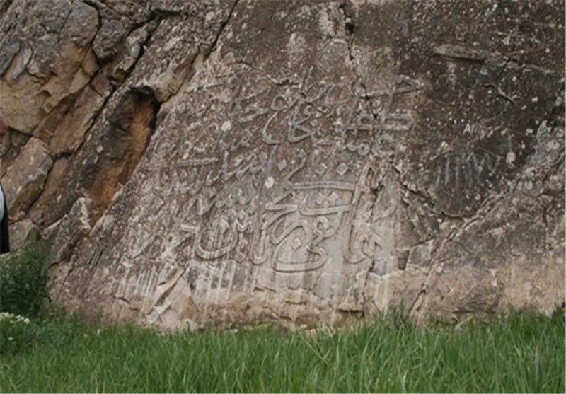 متن حک شده بر روی سنگ، دو بیت شعر به خط ثلث است که به صورت برجسته از سنگ در آورده شده است که با گذشت به علت تغییرات آب و هوایی چندان خوانا نیست و اما این سنگ نوشته متعلق به سال 957 هجری قمری هم زمان بای دوران صفویه است.