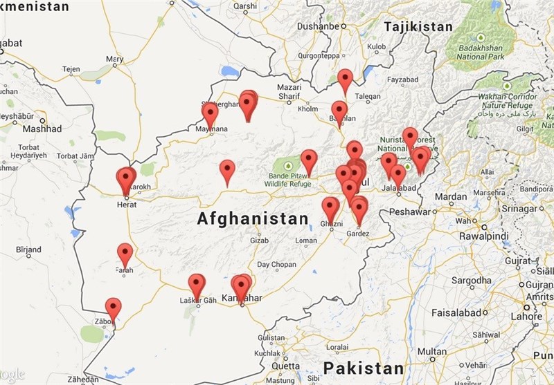نقشه توزیع حملات و اقدامات تروریستی رخ داده پیش ار برگزاری انتخابات ریاست جمهوری افغانستان