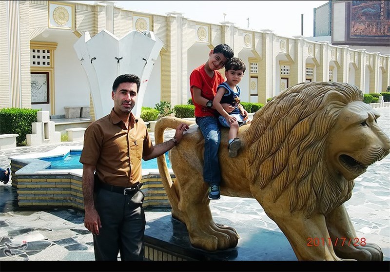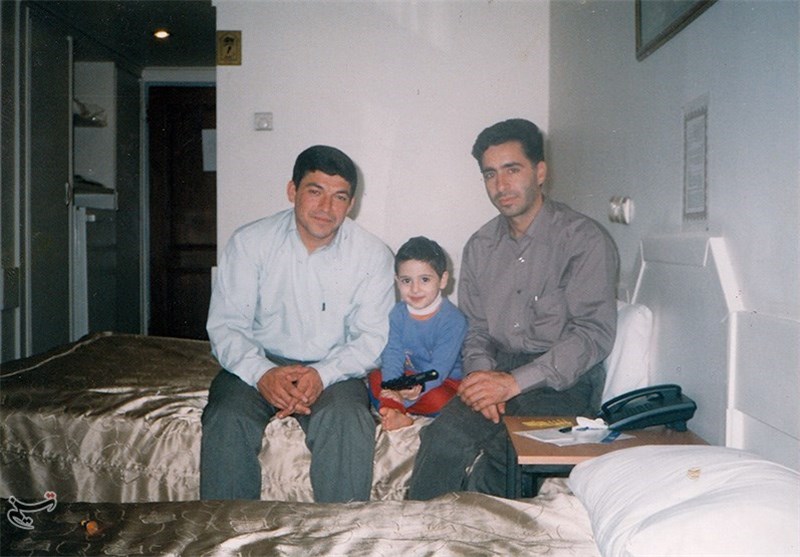 شهید سید رضا میرحسینی به همراه فرزندانش، علی و محمد امین