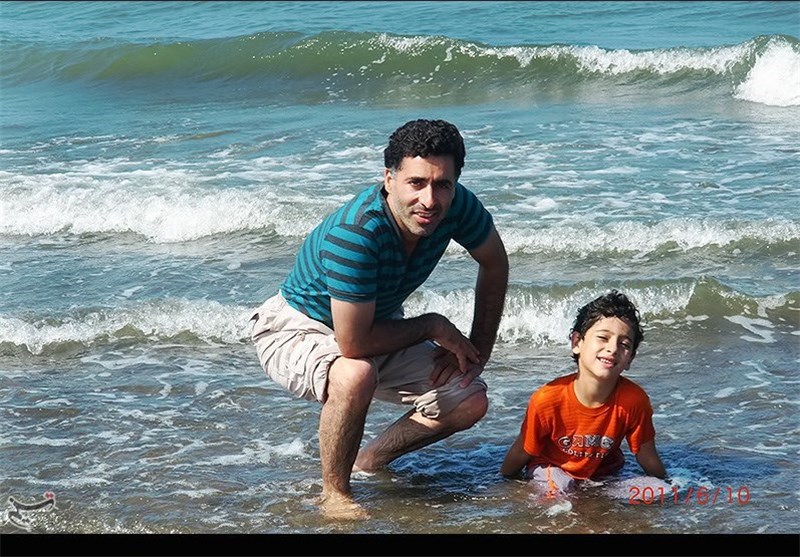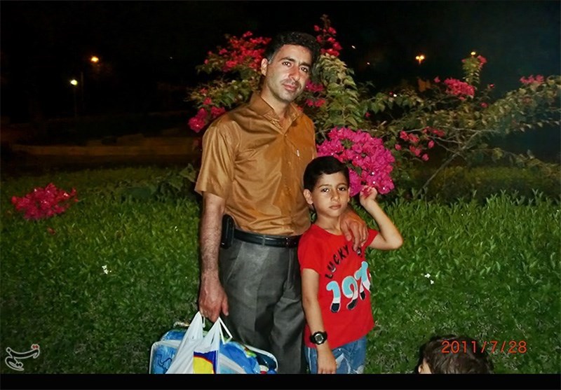 شهید میرحسینی به همراه فرزند بزرگترش، علی