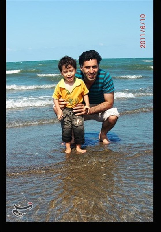 شهید میرحسینی به همراه فرزند کوچکترش، محمد امین