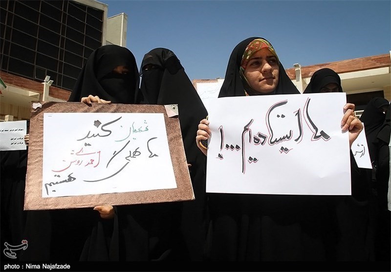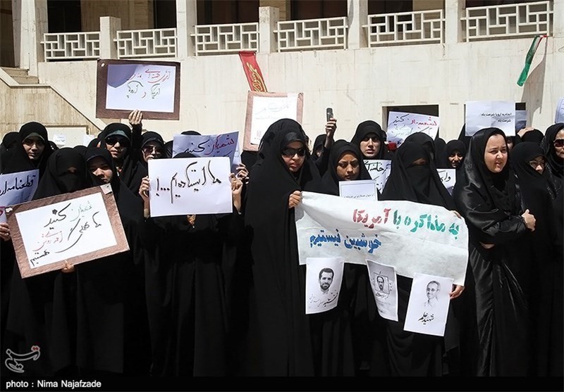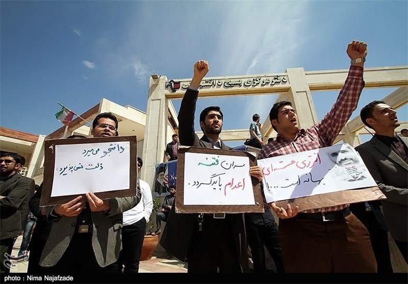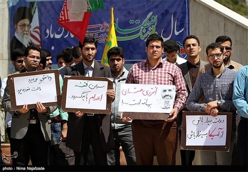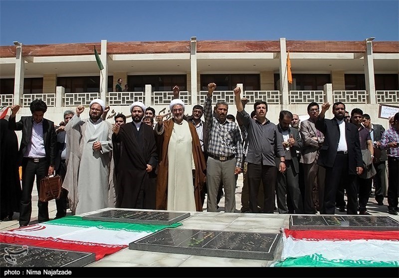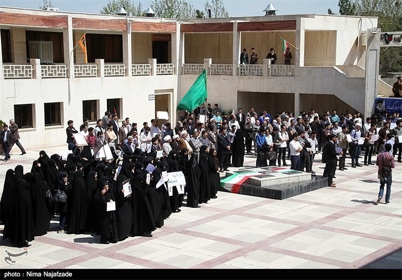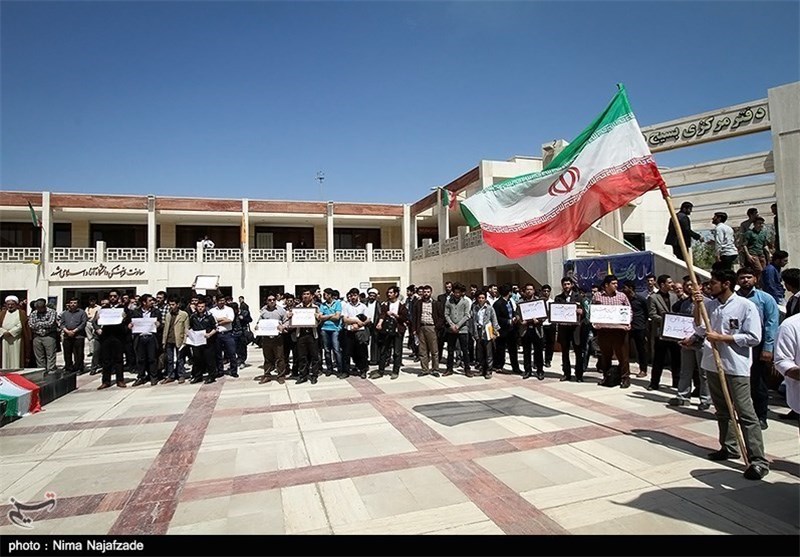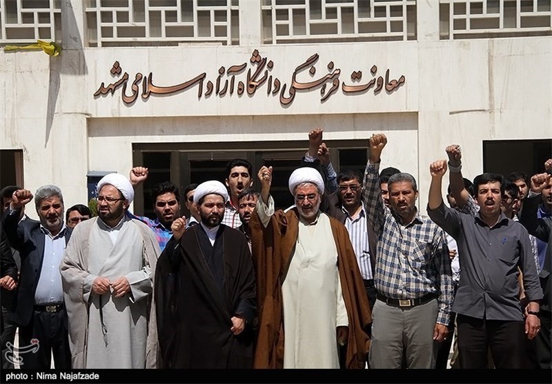 به گزارش خبرگزاری تسنیم از مشهد مقدس، جمعی از دانشجویان دانشگاه آزاد اسلامی مشهد مقدس ظهر امروز در محل گلزار شهدای گمنام دانشگاه آزاد اسلامی گردهم آمده و اعتراض خود را نسبت به بیانیه اخیر اتحادیه اروپا اعلام کردند.