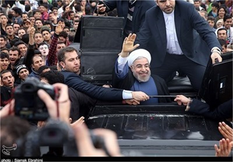 خودروهای تاکسی زرد و سبز اقدام به نصب عکسهای رئیس جمهور در پشت خودروهایشان کردهاند.
