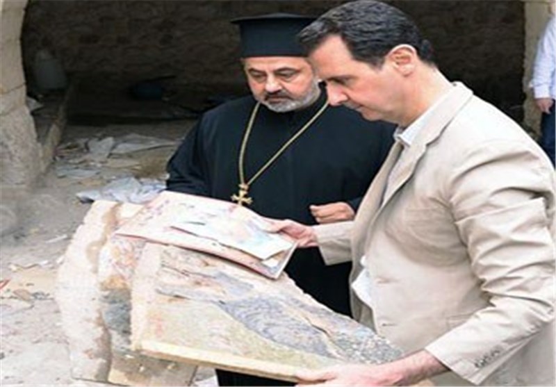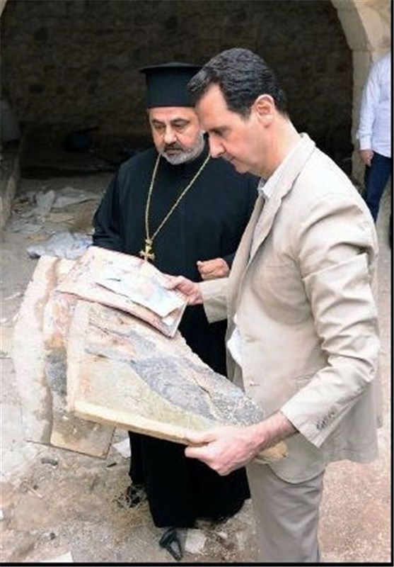 بشار اسد در بازید از کلیسای "مارتقلا" در این منطقه گفت: هیچ کس هر چقدر هم که تروریسم و قدرتمند باشد نمی تواند تاریخ انسانی و تمدن ما را محو کند.