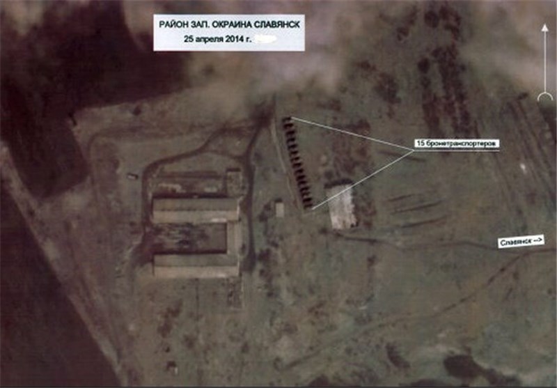 تصاویر مذکور همچنین استقرار این تشکیلات نظامی را در حومههای شهر «اسلاویانسک» در شمال استان «دونتسک»، جایی که درگیریهای بین معترضان طرفداران روسیه و دولت موقت اوکراین همچنان ادامه دارد، نشان میدهد.