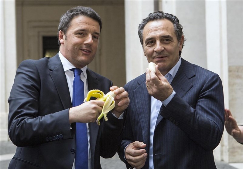 چزاره پراندلی (راست)، سرمربی تیم ملی فوتبال ایتالیا و متئو رنزی، نخست وزیر این کشور