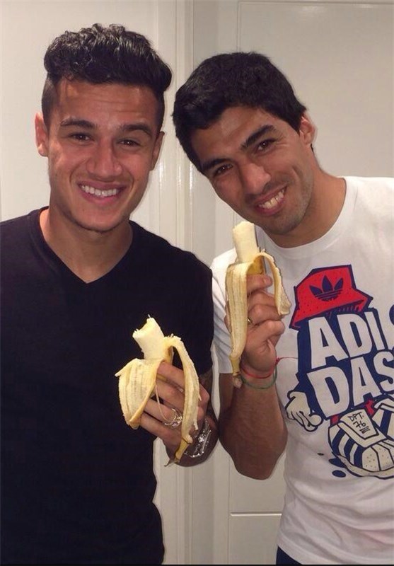 لوئیز سوارز (راست) و فیلیپه کوتینیو، ستارههای تیم فوتبال لیورپول