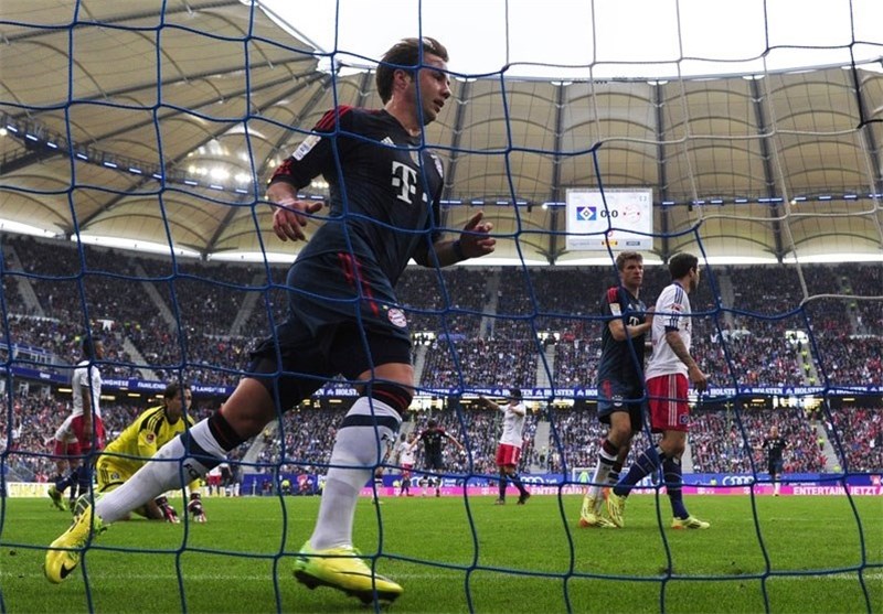 به گزارش خبرگزاری تسنیم، هفته سیوسوم بوندسلیگا آلمان عصر امروز (شنبه) با انجام 9 دیدار همزمان پیگیری شد. در یکی از این دیدارها تیم فوتبال هامبورگ در حالی که در خانه خود پذیرای بایرن مونیخ، قهرمان زودهنگام فصل جاری بود با نتیجه 4 بر یک تن به شکست داد. برای بایرن در این بازی ماریو گوتسه (33 و 70)، توماس مولر (55) و کلودیو پیزارو (75) گلزنی کرد تا مجموع امتیازات این تیم به عدد 87 برسد. تنها گل هامبورگ را هم هاکان چالهاناوغلو در دقیقه 72 به ثمر رساند. این نتیجه در حالی رقم خورد که ژروم بواتنگ در دقیقه 86 بازی از ترکیب بایرن اخراج شد.