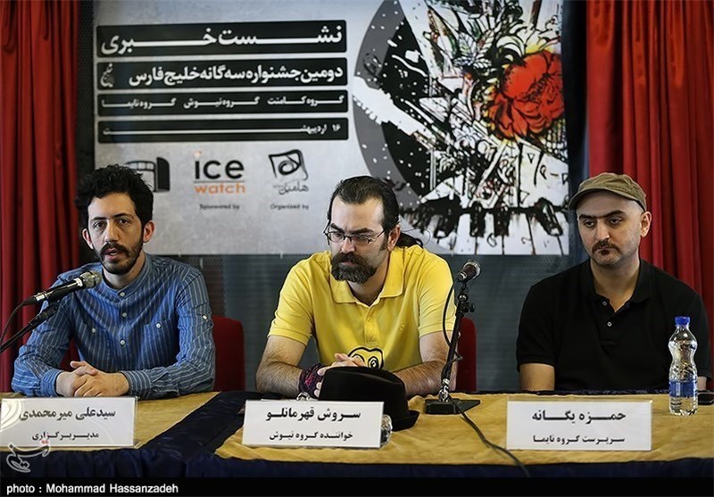 به گزارش خبرنگار فرهنگی خبرگزاری تسنیم، نشست خبری دومین جشنواره 3 گانه خلیجفارس صبح امروز با حضور حمزه یگانه سرپرست گروه «نایما» سروش قهرمانلو سرپرست گروه «نیوش»، نیمار رمضان سرپرست گروه «کامنت» و سیدعلی میرمحمدی برگزارکننده جشنواره در تالار وحدت برگزار شد.