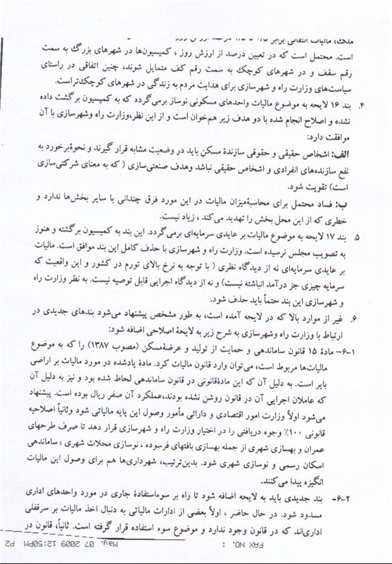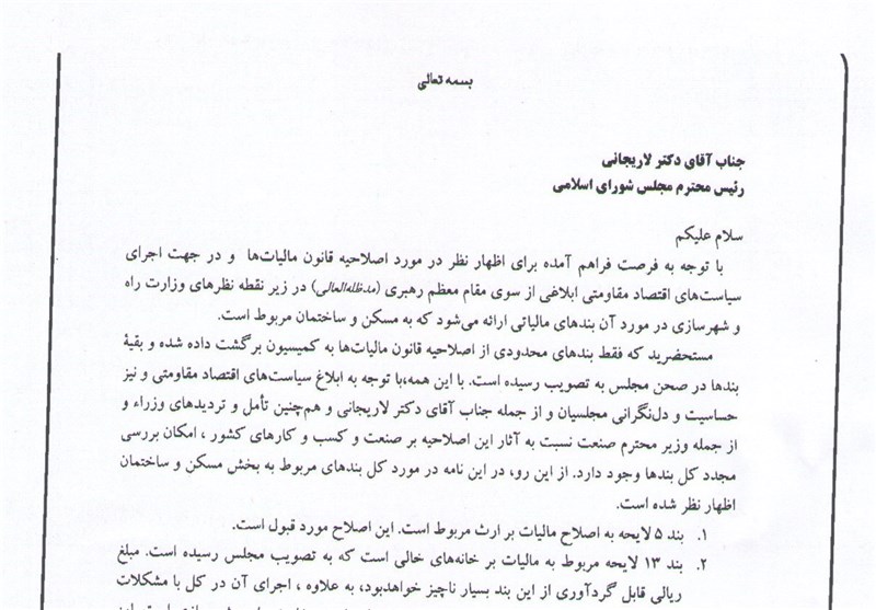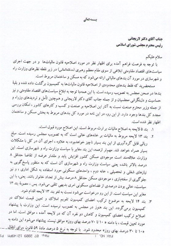 متن نامه وزارت راه و شهرسازی به رئیس مجلس