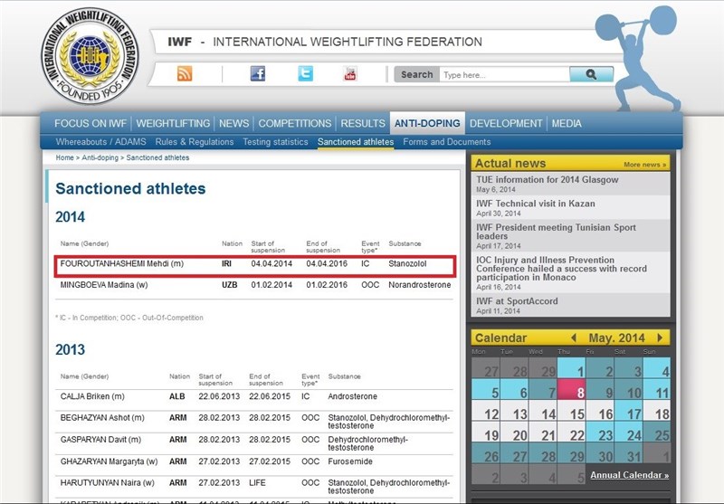به گزارش خبرگزاری تسنیم، سایت فدراسیون جهانی وزنه برداری نام مهدی فروتن هاشمی را در فهرست ورزشکاران دوپینگی خود قرار داد و اعلام کرد که برای وی محرومیتی 2 ساله در نظر گرفته است.