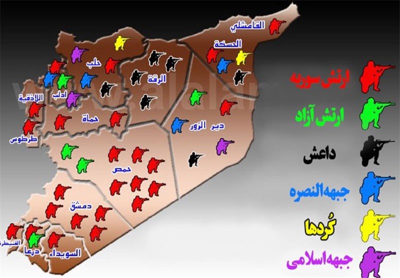 به گزارش گروه بین الملل خبرگزاری تسنیم به نقل از پایگاه خبری العالم، موضع گیری برخی طرف های منطقه ای حامی گروه های مسلح، تاکنون نتوانسته است دیگر طرف ها را در به رسمیت شناختن ارتش آزاد به عنوان چتری بر سر دیگر گروه های مسلح، قانع کند و تلاش ها برای تحمیل این طرز تفکر، ناکام مانده است. به همین سبب، سوریه که در ابتدای بحران، عرصه مبارزه ارتش سوریه با گروه های مسلح تروریست بود، به عرصه کشمکش و جنگ همه گروه های مسلح با یکدیگر تبدیل شد که از میان آن ها می توان به ارتش آزاد، جبهه النصره، دولت اسلام در عراق و شام (داعش)، جنگجویان کُرد و جبهه اسلامی اشاره کرد.