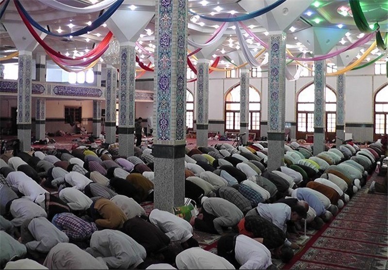 اقامه نماز ظهر وعصرمعتکفین درمسجدجامع زاهدان