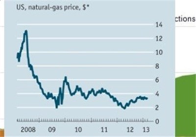 افت شدید قیمت گاز طبیعی در آمریکا درسالهای اخیر