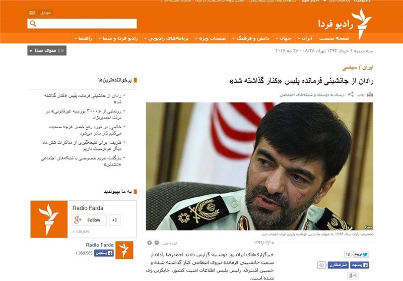 رادیو فردا نیز در ادامه خبر تغییر رادان از سمت جانشینی فرمانده ناجا، خشنودی خود را از این خبر با انتخاب واژه «کنار گذاشتن رادان» نشان داد و احمدرضا رادان را از جمله حامیان سرسخت طرح ارتقا امنیت اجتماعی و اخلاقی معرفی کرد و وی را از کسانی دانست که در اجرای این طرح توسط شورای عالی انقلاب فرهنگی نقش داشت. این رسانه نیز در توصیف طرح ارتقای امنیت اجتماعی و اخلاقی که از سال 1386 به اجرا درآمد٬ بر نظارت بر پوشش شهروندان٬ به ویژه زنان٬ تأکید دارد و از دیگر سو بر مقابله با بزهکاری و بازداشت افرادی تحت عنوان «اراذل و اوباش»!