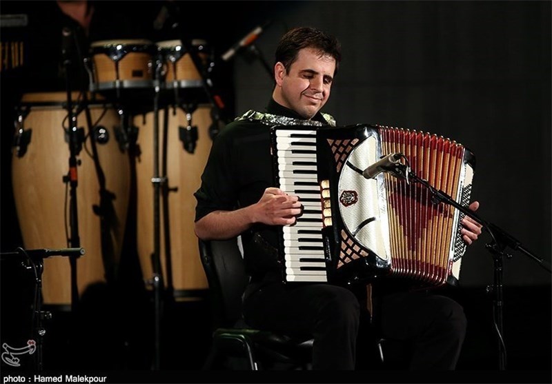 پس از اجرای چند قطعه برای حاضران که با تشویق و استقبال خوبی روبه رو شد، مازیار فلاحی به سراغ نوازنده آکاردئون گروهش رفت و او را برای حاضران معرفی کرد.