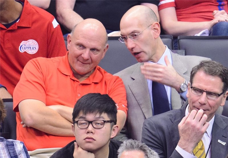 استیو بالمر(چپ) و آدام سیلو، رئیس لیگ بسکتبال حرفهای آمریکا