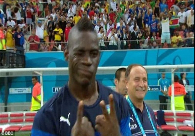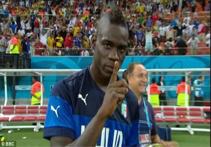 سوپر ماریو که سابقه بازی در تیم منچسترسیتی انگلیس را نیز دارد، در زمان حضور در لیگ برتر بارها مورد بیمهری فوتبالدوستان انگلیسی قرار گرفت. او که به دنبال فرصتی بود تا با انگلیسیها تسویه حساب کند در پایان بازی مقابل شاگردان هاجسون رو به دوربین پیروزی 2 بر یک ایتالیا مقابل انگلیس را نشان داد و در ادامه انگلیسیها را به سکوت دعوت کرد.