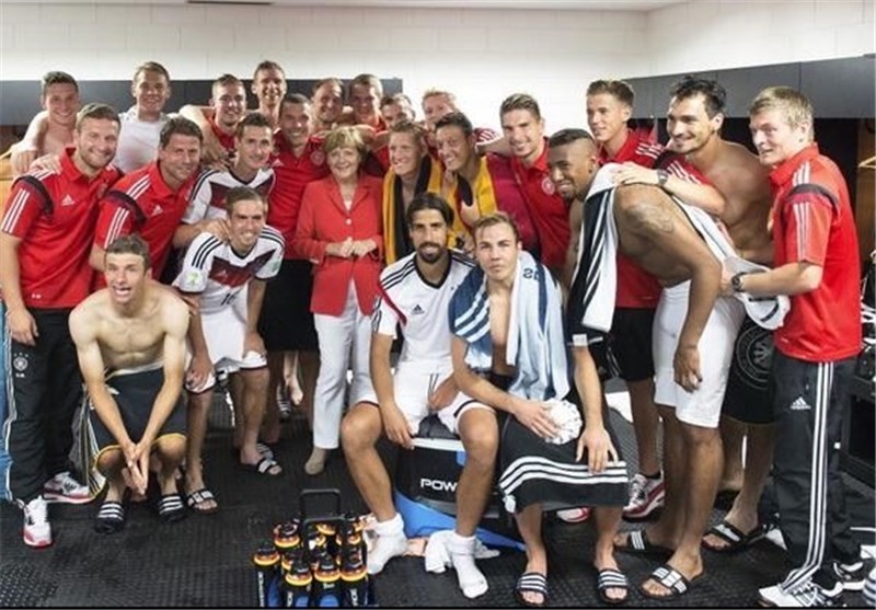 به گزارش خبرگزاری تسنیم، پس از پیروزی 4 بر صفر تیم ملی آلمان برابر پرتغال در نخستین بازی از گروه G جام جهانی 2014، آنجلا مرکل، صدراعظم آلمان در رختکن ژرمنها حضور پیدا کرد تا ضمن تبریک به شاگردان یواخیم لو به خاطر پیروزیشان در کنار آنها عکس یادگاری بگیرد.