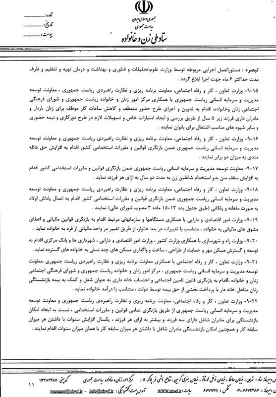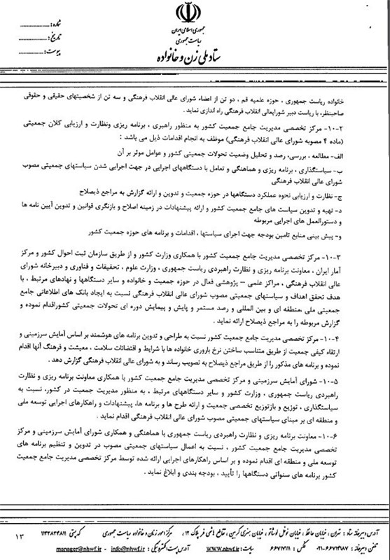 پاسخ به این سؤالات مهم ما را به‌دنبال اسناد نوشته‌شدن این سیاست‌های مشوقانه ترغیب کرد، سیاست‌هایی که توسط شورای عالی انقلاب فرهنگی در دولت گذشته نوشته شد و موجبات تأسیس ستاد ملی زن و خانواده را فراهم کرد، این ستاد به‌عنوان دستگاه اجرایی در زمینه‌های مختلف زنان و خانواده این موضوع را به دولت ارجاع داد و بر همین اساس دبیرخانه شورای ملی زن و خانواده در مرکز امور زنان و خانواده ریاست جمهوری تشکیل شد.