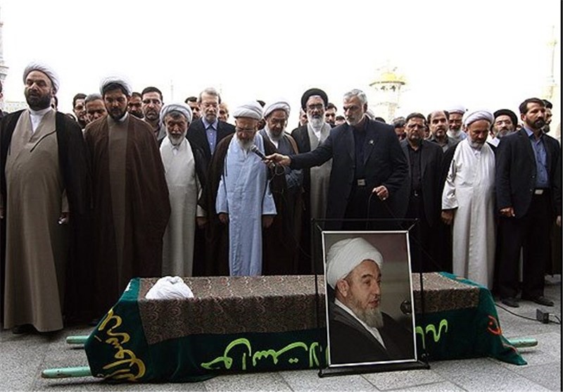 پس از مراسم تشییع نماز میت بهامامت آیتالله سبحانی از مراجع عظام تقلید اقامه شد.