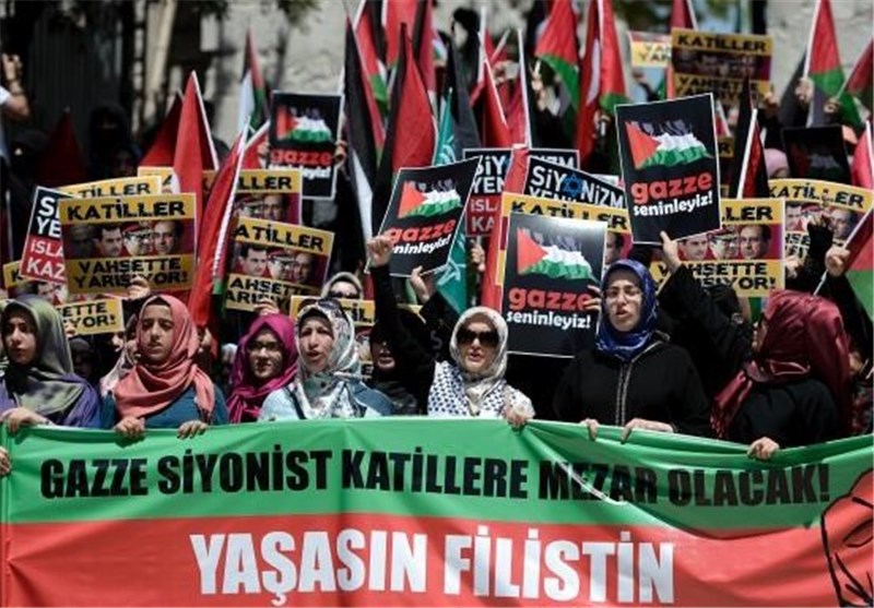 زنان در ترکیه با در دست گرفتن پلاکارد و سر دادن شعارهای ضد صهیونیستی با فلسطینیها اعلام همبستگی کردند.