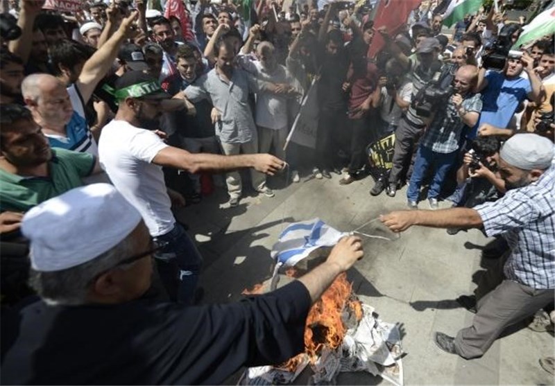 برخی از تظاهراتکنندگان در ترکیه هم روز جمعه با آتش زدن پرچم اسرائیل خشم خود را از اقدامات این رژیم در غزه نشان دادند.