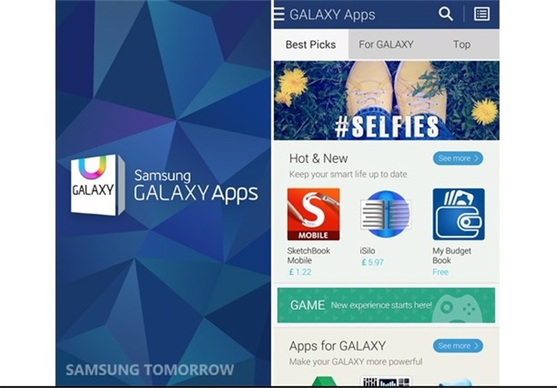 رابط کاربری گالکسی اپ دارای سه بخش مجزای Best Picks، Top و For Galaxy است.