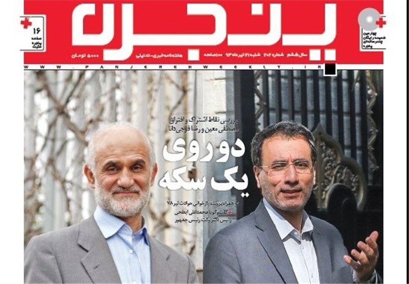 یک تیر با سه نشان (ظاهر و باطن جنگ افروزی تازه در غزه)، ادوارد شوارد نادزه (مرگی که خاطرهها را زنده کرد)، اشرف غنی احمدزی نسخه مشابه حامد کرزی، رزمندگان اسلامی و مشرق اذکار، جشنوارهای مستقل و غیرسیاسی و گردشگری حلال!، خانه تکانی در خانه کتاب، شرمساری دبیر قلم زرین از مسئولیتش، ناشران ممیزان جدید کتاب کشور، مصائب دنباله دار، یک نمایشگاه خانه به دوش، روحانی واقعی از نگاه امیرخانی، نرخ خودرو در سربالایی!، سقوط شاخص بازار سرمایه به خیلیها ضرر زد، شبهای روشن سینما(سینماها در ماه رمضان بهطور ویژه میزبان مخاطبان هستند)، رستاخیز حاشیهها(فیلم احمدرضا درویش یک گام دیگر به اکران عمومی نزدیک شد)، محصول ایرانی مخاطب جهانی(جنایتی تاریخی که بر پرده سینما ثبت میشود)، باب محاکمه هنوز باز است(یک برش تاریخی از منظر علی اکبر ناطق نوری)، جهان از دریچه کاریکاتور، جهان از دریچه عکس، مثبت و منفی و ... از بخشهای مهم مجله خبری هستند.
