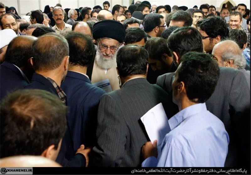 در آن زمان ایشان روبروی حاضران و برروی یک صندلی می‌نشینند. اولین کسی را که می‌بینم جلوی ایشان با یک لباس سفید بلند و جسم خمیده می‌رود، همان پروفسور ظهیرالدین صدیقی است. بعد از او موسوی گرمارودی خدمت آقا می‌رود. ساعت دقیقا 8 و بیست و پنج دقیقه عصر شنبه تاریخ 21 تیرماه 1393 است. قادر طهماسبی و انصاری نیا شاعران بعدی هستند که خدمت مقام معظم رهبری می‌‎روند. انگار همه شاعران به خود می‌آیند که از قافله عقب مانده اند و هر کدام کتابی با نامه ای بر دست سعی میکنند که خودشان را به حضرت آقا برسانند. با اینکه بسیار وقت کم است، بسیاری از شاعران فرصت پیدا میکنند که کتاب و یا نامه شان را به حضرت آقا بدهند که با صدای ملکوتی اذان مغرب آنهایی که نوبتشان نرسیده بود برمیگردند و سرجایشان به نماز قامت میبندند.