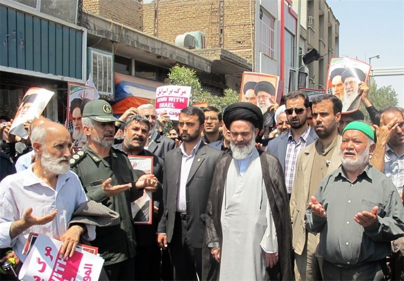 مردم روزه دار با سر دادن شعار "مرگ بر اسرائیل" و "مرگ بر آمریکا" و "القدس لنا" از حمایت های بی دریغ آمریکا نسبت به رژیم جعلی صهیونیستی اعلام انزجار کردند و سپس در بیانیه پایانی، با تکید بر محکومیت شدید حملات ددمنشانه و هجوم وحشیانه دژخیمان رژیم اشغالگر قدس شریف به غزه، نفرت و انزجار قلبی خود را از این جنایت هولناک به جهانیان نشان دادند.