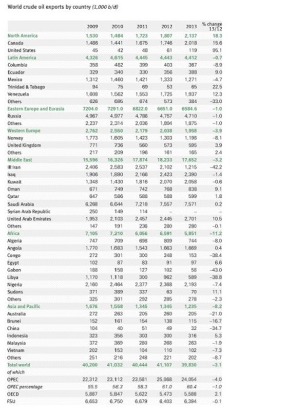 صادرات نفت ایران در این سال نسبت به سال قبل از آن حدود 900 هزار بشکه در روز کاهش داشته است. ایران در سال 2012 بالغ بر 2.102 میلیون بشکه در روز نفت صادر کرده بود.