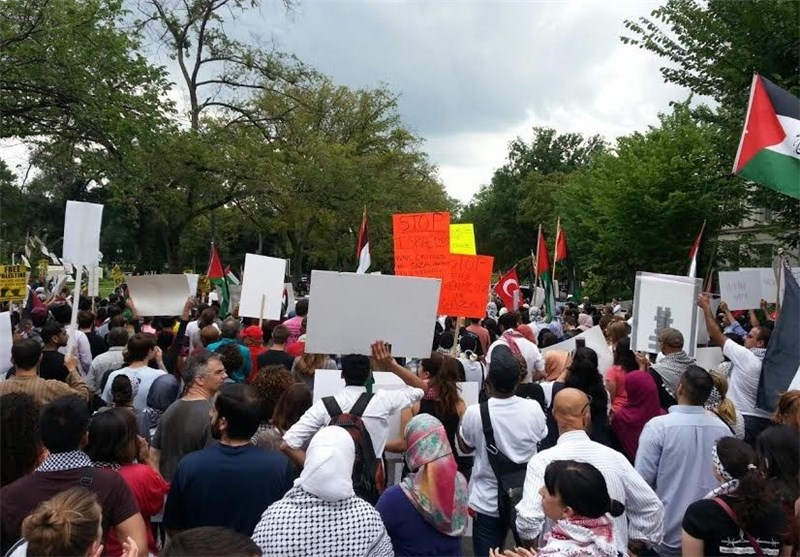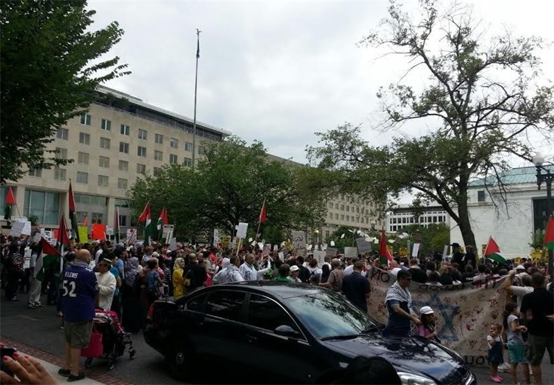 راهپیمایی از مقابل وزارت خارجه آمریکا تا کاخ سفید علیه جنایات اسرائیل+عکس