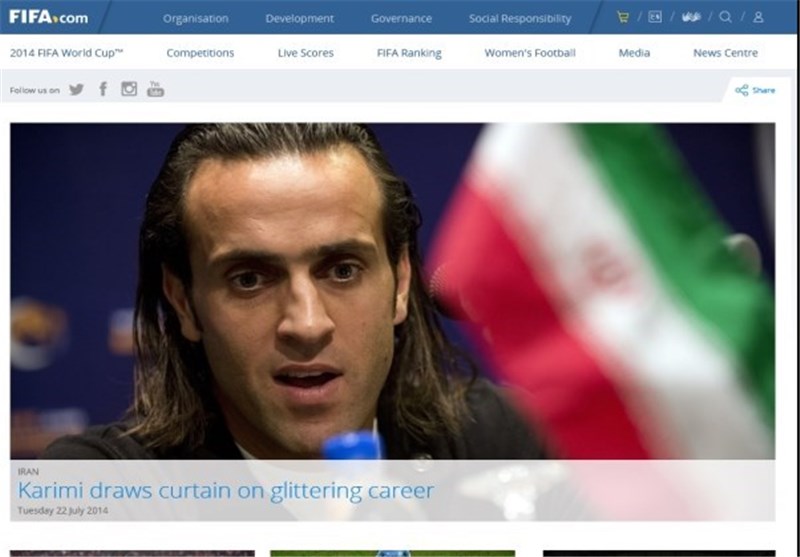 به گزارش خبرگزاری تسنیم، خبر خداحافظی علی کریمی در سایت فیفا هم بازتاب داشت و به خبر یک این سایت تبدیل شد.