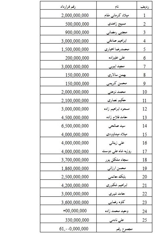 به گزارش خبرگزاری تسنیم و به نقل از سایت باشگاه سایپا، در پی درخواست رسمی مهدی تاج رئیس سازمان لیگ برتر فوتبال از باشگاههای حاضر در چهاردهمین دوره این رقابتها، رقم قرارداد اعضای کادر فنی و بازیکنان تیم فوتبال سایپای البرز اعلام شد.