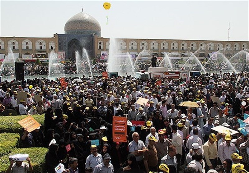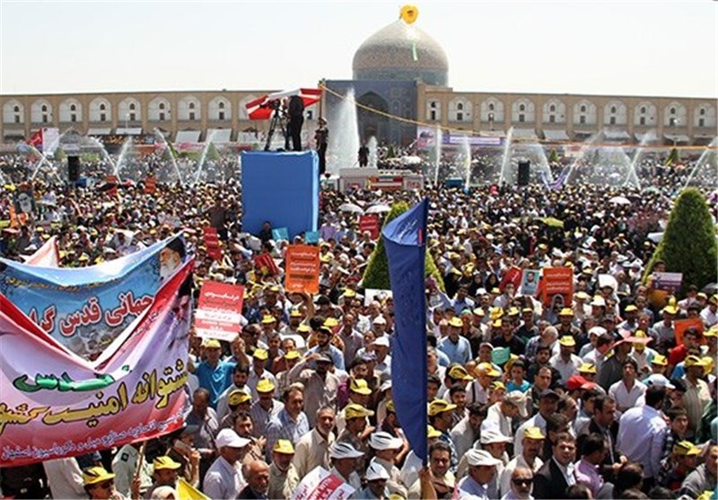 فریاد مرگ بر آمریکا و مرگ بر اسرائیل هزاران هزار نفر از روزهداران اصفهانی در راهپیمائی روز جهانی قدس پایههای سست کاخ ظلم و ستم استکبار را به لرزه درآورد تا جهان از ابهت همدلی و اتحاد مسلمانان و عدالتخواهان دنیا مالامال شود.