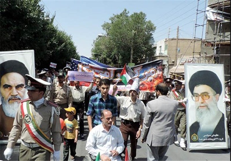 مسئولان و مدیران شهری و کشوری ، جامعه ورزشکاران، فرهنگیان، بسیجیان، جامعه پزشکان، دانش آموزان و دانشجویان، نیروهای مسلح، مسلمانان ایرانی و غیر ایرانی  همه و همه امروز در راهپیمایی روز قدس به ندای رهبر معظم انقلاب لبیک گفتند و باشعار نصر من الله و فتح القریب، سکوت هر مسلمان خیانت است به قرآن، مرگ بر داعش و نه لبنان نه غزه جانم فدای اسلام جنایات رژیم صهیونیست در کرانه نوار غزه را محکوم کردند.
