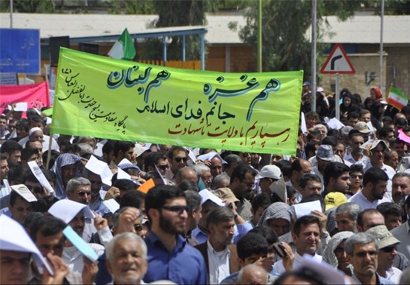 وی افزود: از 66 سال پیش تجاوز به فلسطین شروع شده است و در این روزهای جنگ اسرائیل حدود 7000 تن مهمات بر سر مردم فلسطین ریخته است و حتی به زنان و کودکان نیز رحم نمی کنند و ملت های منطقه نیز سکوت کرده اند و داعش نیز پرچم فلسطین را لگد کردند این گروهی که دست نشانده اسرائیل است.