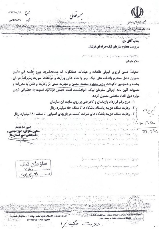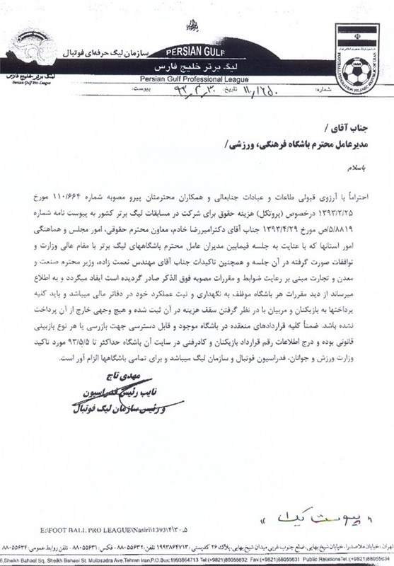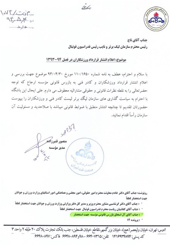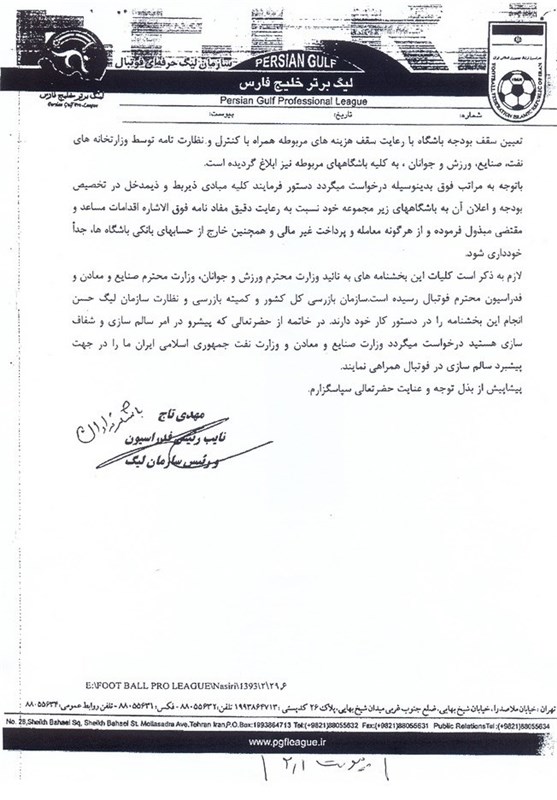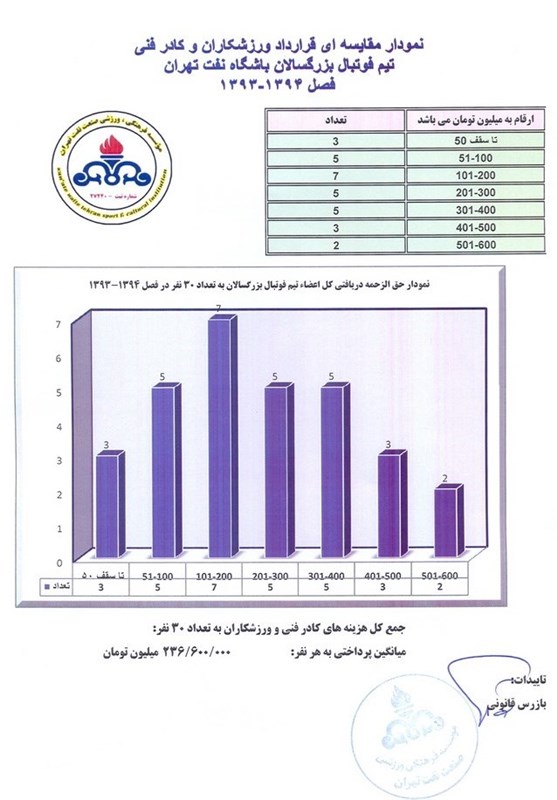 به گزارش خبرگزاری تسنیم و به نقل از سایت باشگاه نفت تهران، این باشگاه با اعتقاد به قانونمندی و شفافیت در هزینه‌های باشگاه‌های ورزشی، سقف بودجه انعقاد قرارداد با ورزشکاران و کادر فنی را به شرح زیر اطلاع رسانی می‌کند: