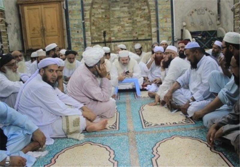 شهاب الدین پوپلزی و اطرافیانش در حال تصمیمگیری برای اعلام عید فطر درمسجد قاسم علیخان پیشاور پاکستان