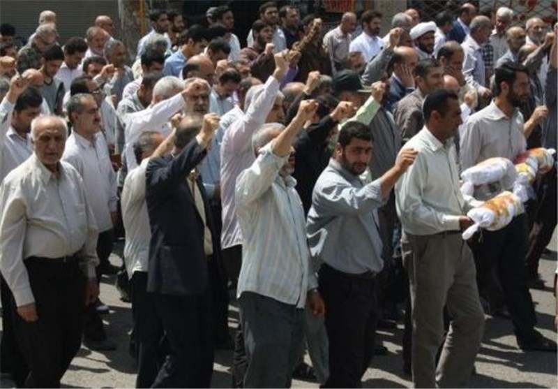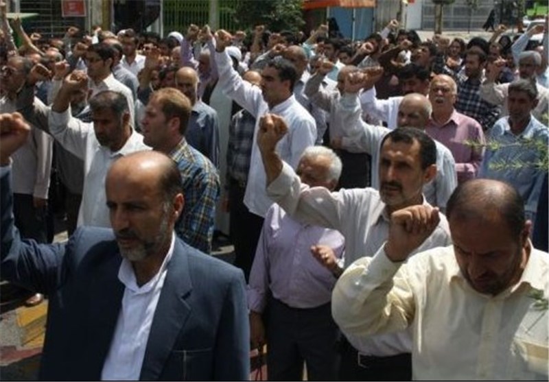 تجمعکنندگان با سردادن شعارهایی همچون "مرگ بر آمریکا" و "مرگ بر اسراییل"، آمریکا را همدست جنایت های رژیم صهیونیستی اعلام کردند.