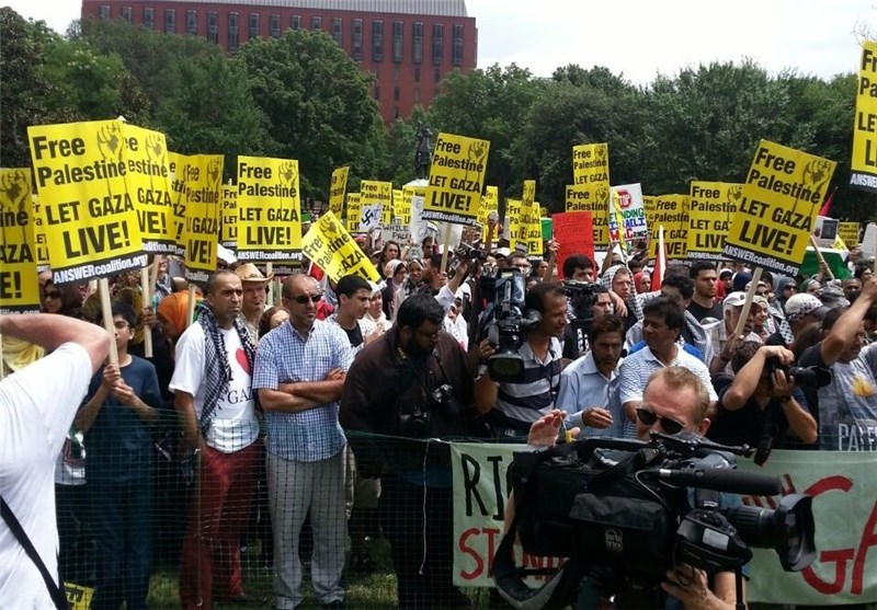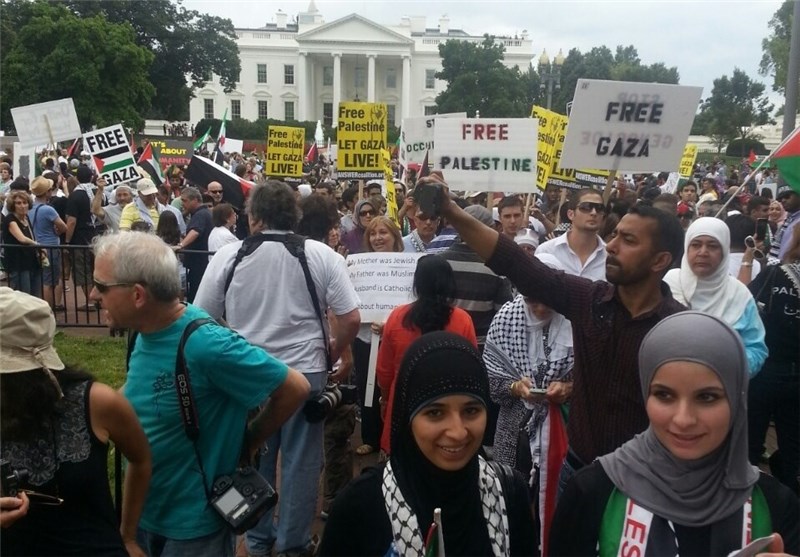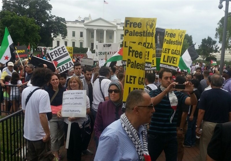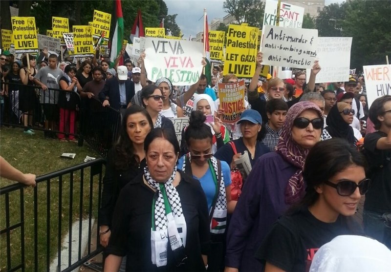 شرکت کنندگان در این تظاهرات که در حدود 20 هزار تن برآورد میشوند شعارهایی در حمایت از آزادی فلسطین و ساکنان نوار غزه سر دادند و سخنرانان این مراسم حمایت کاخ سفید از اشغالگری و جنایات رژیم صهیونیستی را محکوم کردند.