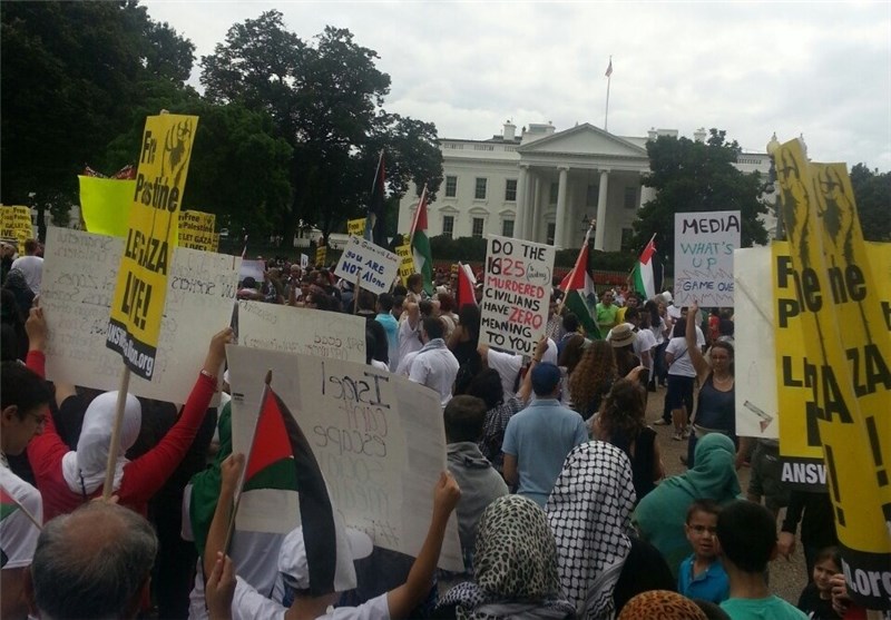 به گزارش خبرنگار خبرگزاری تسنیم در واشنگتن، هزاران معترض ساعتی پیش مقابل کاخ سفید تجمع کردند و علیه تجاوز اخیر رژیم صهیونیستی به غزه که تاکنون 1700 فلسطینی را به خاک و خون کشانده و هزاران زخمی دیگر به جای گذاشته است، تظاهرات کردند.