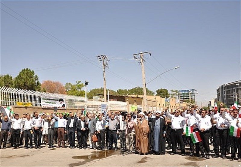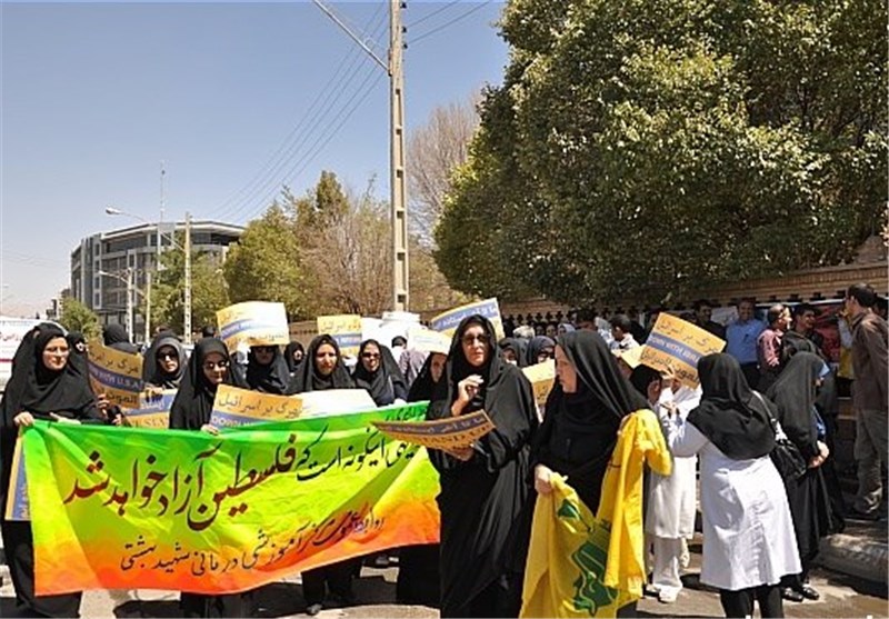 تجمع کنندگان در این مراسم با سردادن شعارهای مرگ بر آمریکا، مرگ بر اسرائیل و مرگ بر انگلیس خشم و انزجار خود را از جنایتهای رژیم صهیونیستی اعلام و با بیان شعار مسلمانان اتحدوا اتحدوا حمایت خود را از مردم بی دفاع غزه اعلام کردند.
