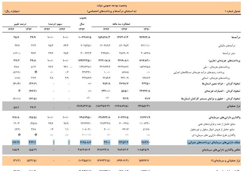 آمار جدید از بودجه سه ماهه سال 93/پرداخت‌های عمرانی در مرز صفر