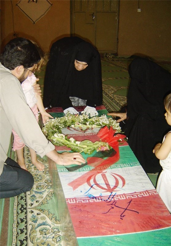 حضور خانواده شهید سید محمود مصطفوی در کنار پیکر شهید