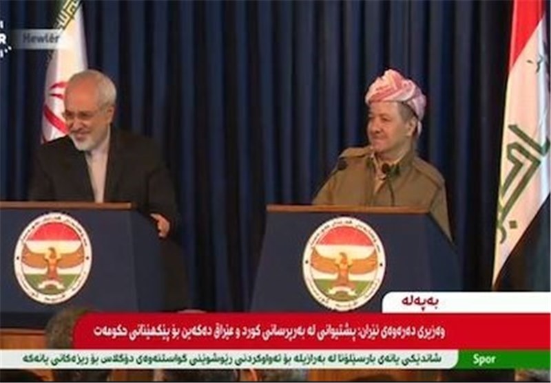 محمد جواد ظریف وزیر خارجه ایران که به عراق سفر کرده است در کنفرانس خبری مشترکی با مسعود بارزانی رئیس منطقه کردستان عراق در اربیل شرکت کرد.
