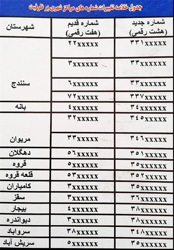 مدیرعامل شرکت مخابرات استان کردستان خاطرنشان کرد: با اجرای این طرح، شماره تلفن مشترکان شهرستان های استان کردستان از پنجم شهریور امسال، هشت رقمی شد.