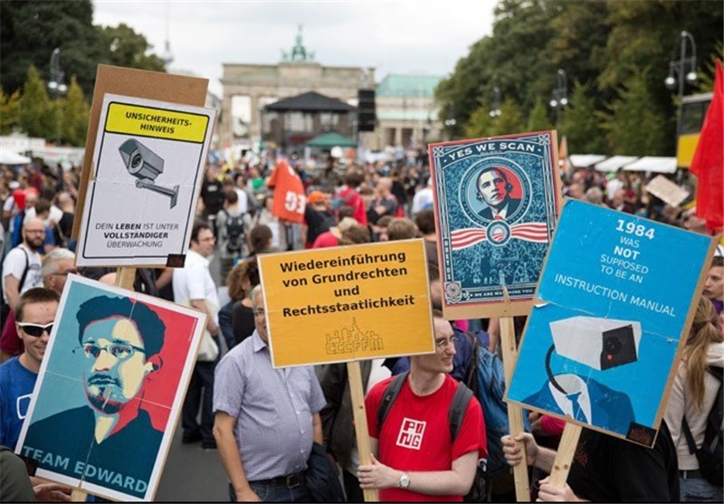تظاهرات آلمانیها در برلین در پی افشاگریهای رسواگرانه در مورد فعالیتهای جاسوسی این کشور همچنین افشای همکاری سازمانهای اطلاعاتی آلمان با آژانس امنیت ملی آمریکا و دیگر همپیمانان آن که در اسناد افشا شده اسنودن آشکار شده است رخ داد.