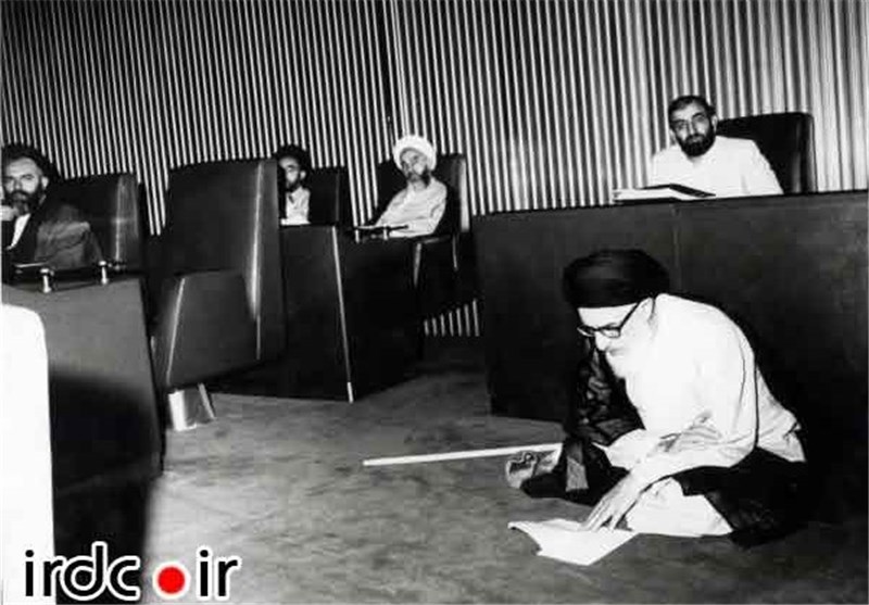 دکتر علی قائمی درکنار آیت الله طالقانی درمجلس خبرگان قانون اساسی